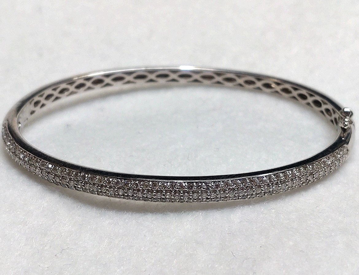 K18金ホワイトゴールドにダイヤモンドがセットされたバングルをお持ちいただきました。