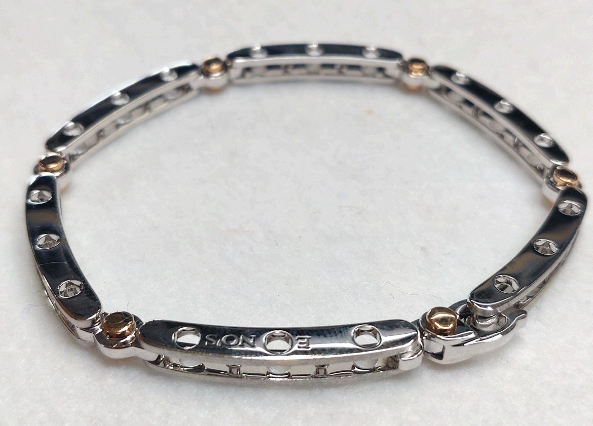 ブレスレット E-NO’S(イーノス) 2025.11.09 ブランドジュエリー 質 30万円 買取 33万円 2025年10月の価格です。 E-NO’S(イーノス)のブレスレットをお持ちいただきました。 18金ホワイトゴールドに一部イエローゴールドが組み合わされたデザイン性の高いブレスレットです。 状態は少し線キズが見られるものの、凹みや歪み等の大きなダメージはございませんでした。 今回付属品の箱もすべて揃っており、最新の相場動向をもとにお値段をご提示させていただきました。 ブランドジュエリー ネックレス LOUIS VUITTON(ルイ・ヴィトン) 一覧に戻る リング ダイヤモンド