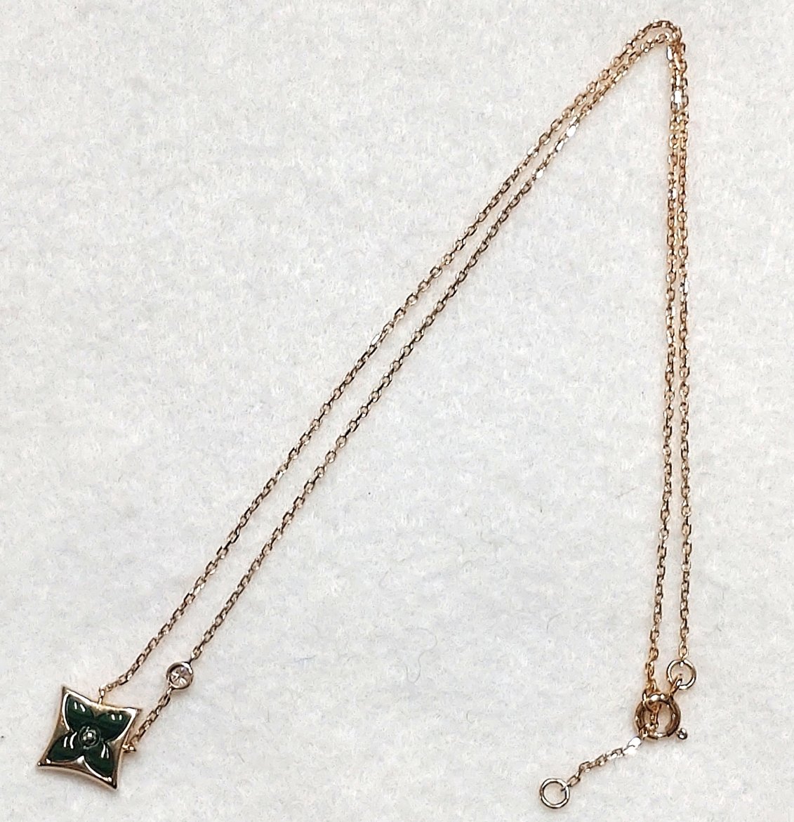 ネックレス LOUIS VUITTON(ルイ・ヴィトン) 2025.11.09 ブランドジュエリー 質 12万円 買取 15万円 2025年10月の価格です。 ルイ・ヴィトンのネックレス「スターブロッサムBB」をお持ちいただきました。 フラワー型に彫刻した小ぶりなマラカイトに組み合わせたピンクゴールドが、ダイヤモンドによって美しく際立つ素敵なネックレスです。 状態は少し小キズは見られましたが、特段目立つような大きなダメージはございまんでした。 今回付属品の箱も揃っており、ルイヴィトンの中でも人気のあるネックレスでしたので目一杯のお値段をご提示させていただきました。 ブランドジュエリー バッグ LOUIS VUITTON(ルイ・ヴィトン) 一覧に戻る ブレスレット E-NO’S(イーノス)